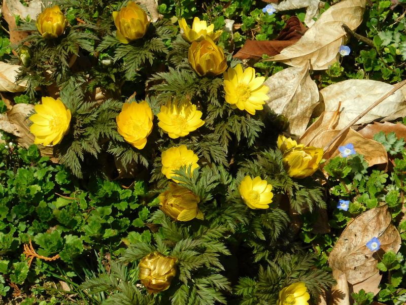 -- オオイヌノフグリの、青い小さな花がちりばめられ。10:16