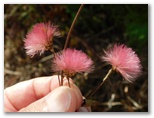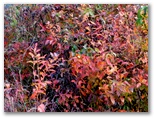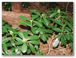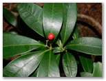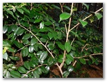 針葉樹林の林床には、ミヤマシキミの小株がたくさんあり、花や実もありました。ヤブツバキに似た常緑照葉樹も見られましたが、花はありません。冷え込んでいたせいでしょうか、キジョランの葉がみな丸まっていました。鬼女の白髪に例えられる綿毛は、ほとんど残っていません。でもよく探したら、1個だけ種をびっしりと抱えた実があり、白毛をなびかせていました。こうした針葉樹林は、見た目にはうす暗いのですが、滑る落ち葉がないので、楽々と歩けます。