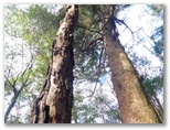 墓地から5分ほど登ると、尾根上に2本の大きなモミが門のように立っていました。その1本は枯れています。一般登山道なら危険木として、すぐに伐られるでしょう。この尾根はなかなかに急峻で、落ち葉に足を乗せるとズルズルと滑ります。こうなるのをある程度予想してはきましたが、思いのほか難儀しました。山慣れしていない人とこの山に登るのなら、落ち葉の少ない季節がお奨めです。やがて尾根の勾配が緩み、尾根上にどっしりと立つ大モミが次々と現れました。