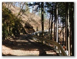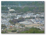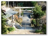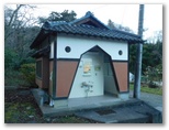 話を端折り、今熊山園地にやって来ました。家々、川、橋、線路、駅、等々、箱庭のように望めます。ここで、きょう初めてベンチに腰を下ろしました。トイレも利用しましたが、外見も、内部も、名称(今熊山園地便所)も、昭和レトロ風です。もう一度熱い紅茶を一口飲んで、下山の途に就きました。参道の途中に好展望の休憩所があり、きょう初めて山中で人と出会いました。引き続き参道をスタコラ下り、今熊神社下社に到着。きょうの山歩きは、実質上ここで終了です。