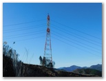 林道は山腹を巻いていくので、谷側に好展望があります。都心部が見える地点に来ると、探すのは定番、東京スカイツリー。一般に、舗装された水平な道を長時間歩くと、同じ筋肉ばかりを使うので足が疲れますが、短時間なら足と脚が休まります。もちろん、ストレスで疲れた神経も癒されます。時々送電線と送電鉄塔を見上げながら、進捗を感じ取り、心理的には思いのほか早く入山峠に到着しました。地理院地図の(旧)入山峠ではなく、縦走路と林道が交差する地点です。