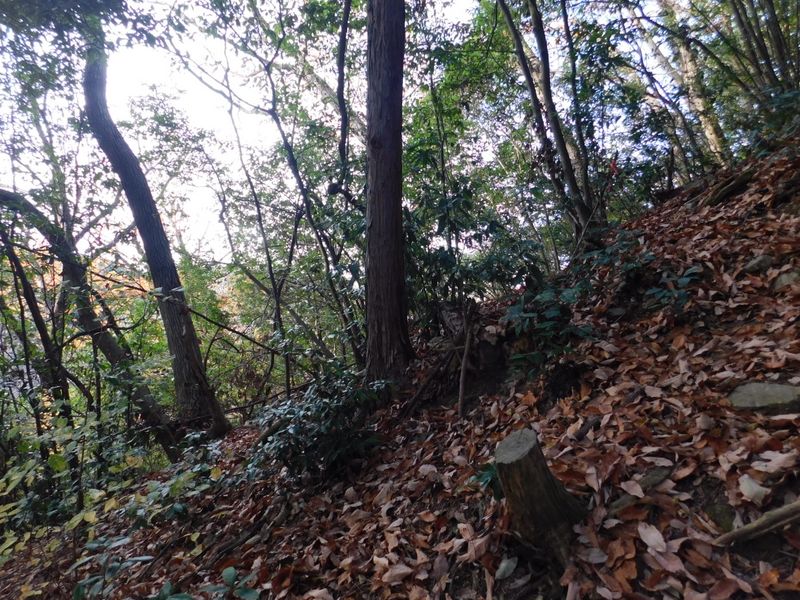 -- 急登の上に乾いた落ち葉の堆積で歩き難い。