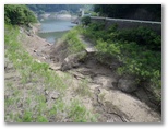 名栗湖の水位は、かなり低いように思いました。しばらくは、今まで以上に水を大切に使わねばなりません。堤頂を歩いてダム右岸の周遊道路に入ります。白谷橋から下を見下ろすと、ありゃりゃ、全然水が流れていません。でも地表に水が滲み出ているので、白谷沢の水が伏流しているのかも知れません。こんな状況で、白谷沢をジャブジャブと歩けるでしょうか? 実際、白谷沢に行くと、水はちゃんと流れていましたが、腰より上を濡らすことはありませんでした。