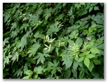 天狗の滝にやって来ました。正面から見ることができます。落差があって、小気味の良い滝ですが、水がもっと多ければ、勇壮豪快な滝になるのかもしれません。遡行はできないので、左を巻きます。しっかりした岩道があるので、安心して登れます。天狗の滝の上流には、ロックガーデン風のきれいな場所がありました。そのうち、イワタバコの花が添えられるでしょう。そしてそのすぐ上流に、白谷沢最大の名所ともいえる、ゴルジュがそそり立っていました。