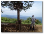 権次入峠のベンチで昼食にしました。まだ半分凍っていたお茶とスポーツドリンクとを、交互に飲みます。あたりは目を潤す緑のミズナラ林。暑い夏の日、食事をするなら、明るい山頂広場よりも、緑陰豊かな権次入峠がお奨めです。エネルギーが充填できたところで、山頂に向かって発進。この区間も汗をかきますが、左から吹き上げる涼しい谷風を受けながら歩くことで、すんなりと登りきってしまいました。山頂広場に飛び出すところは、映画の一場面のようです。