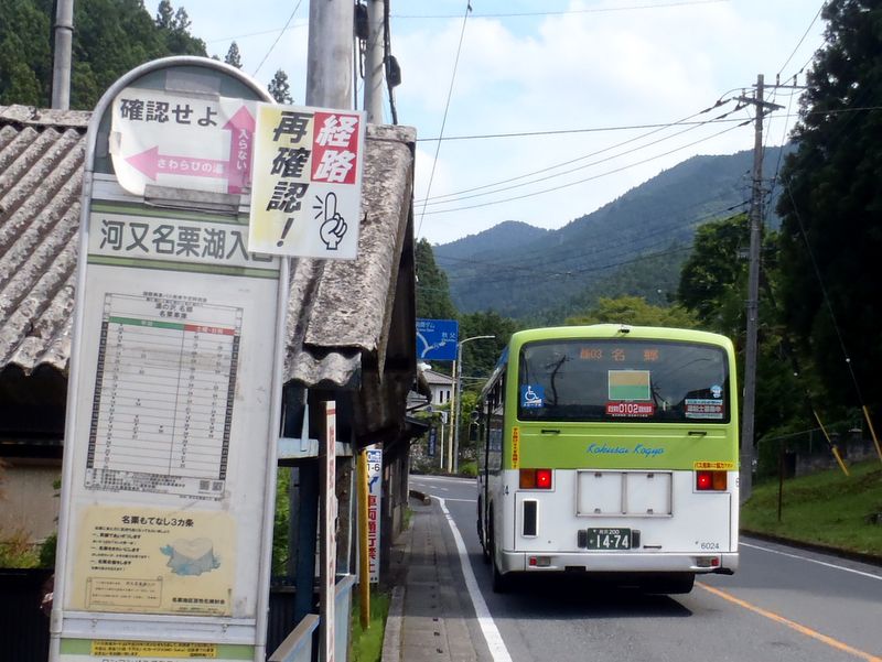 -- 名郷行きバスに乗って、河又名栗湖入口で下車。8:30