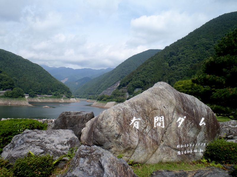 -- 有馬ダムに到着。この石は、栗の形だという。8:48