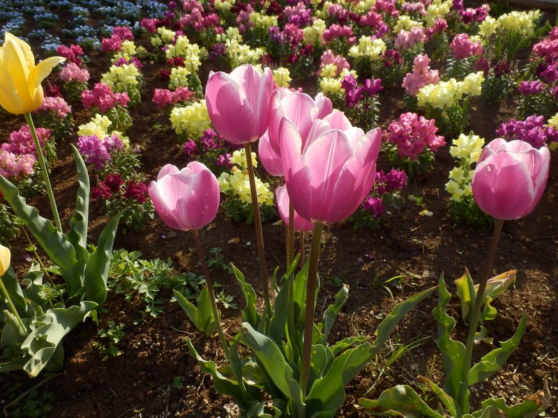 -- チューリップは最終盤、青はネモフィラ。15:59