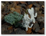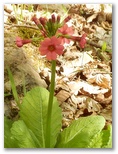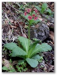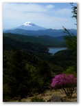 富士見山荘に来ると、富士山を望めました。晴れた空にくっきり爽快な稜線を描いています。わが富士山は、きょうも見事な晴れ姿! これで、道草の自粛は早くも解除です。山荘のわきを下りて行くと、さっそくクリンソウが咲いていました。咲き始めたばかりらしい、初々しいサーモンピンクの花。優しげな緑色の葉。サクラソウの女王の風格を表すには、もう少し日数が必要なようです。白い花の咲く木はアズキナシ、それともウラジロノキ? リンゴに似た花はズミかな?