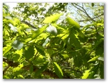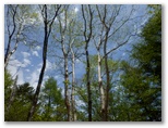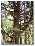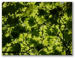 雷岩に戻り、下山の途に就きます。唐松尾根を指す道標に [上日川峠 55分] とありますが、きょうは無理。狭い登山道を次から次へと人が登って来るし、自分の前に長いパーティーが歩いていることもあります。やがて富士山が見えなくなり、道幅も広くなると、マイペースで道草も遠慮なく食えるようになりました。本当に水が滴りそうなミズナラの若葉、カエデの葉の影絵、迫力あるモミの巨樹、松の枝のサルオガセ、カラマツ林に響くエゾハルゼミの大合唱 ...