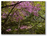 登山道では、赤紫色のトウゴクミツバツツジが咲いていました。花の盛りを過ぎた木もありますが、十分にきれいです。さらに登って行くと、広げた枝にびっしりと花をつけた豪華な木がいくつもありました。このツツジが朱色のヤマツツジと共演すると、なお素敵なのですが、この道では見つかりませんでした。人の手に依らずに混生することは、なかなかありません。大菩薩峠の手前には、ニホンジカの群れがいました。シカはレンゲツツジの葉を食べると言います。