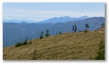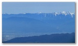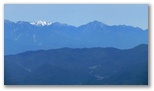 大菩薩峠から、視界に入る人の数が急に増えました。介山荘前に立つ山名標の前にも、その先の稜線上にも、人、人、人。天気好し、眺望好し、名前好し、アクセス好しの百名山。意外にも、若者たちが多く見られました。まず峠の方位盤に行くと、何と言うか、交響曲のように南アルプスが大展開! 北岳から聖岳へ、甲斐駒へ、くっきりと浮かぶ稜線を目で辿ります。そしてデジカメを最大画素に設定して猛撮影。また峠まで戻って、奥多摩の山々も眼とカメラに収めました。
