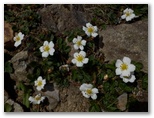 私が持っているガイドブックには、レンゲツツジ、サラサドウダンほか、花の咲く場所が記されています。でもこれらの花芽はまだ固く、小さく、咲くのはもう少し先のよう。代わりに、本に記されていないトウゴクミツバツツジが咲いています。あちらこちらでスポット咲きしている鮮やかなマジェンタ色の花がそれ。青い空と緑の山に、きりっとした視覚アクセントと、生命感とを添えています。足下には、白や黄色の小さな花が、ずっと途切れることなく咲いていました。