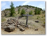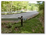 上日川峠に戻り、石丸峠への道を下って行きます。10分ほど緩やかに下ると、沢を渡る直前に古びた道標があり、[上日川ダム北岸] と書かれた腕木が右の道を指していました。もし沢を渡って直進すれば石丸峠です。この沢にもクリンソウが咲き始めていました。上日川ダム北岸(正しくは大菩薩湖北岸)への道は、歩かれた形跡こそ薄いものの、幅が2~3mはある立派なものです。この道を10分ほど進むと、舗装された砥山林道に飛び出しました。休憩ベンチが3脚あります。