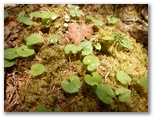 さて、山頂へ行ってきましょう。この区間は展望こそありませんが、苔むした倒木、フカフカの林床など、奥秩父の自然林に似た味わいがあり、私は好きです。所要時間は往復15分程度、きつい登りはありません。人の歩く道だけでなく、左右にも目をやりましょう。木にシカのかじった跡があります。動物が泥浴をするヌタ場はないでしょうか。足下の可憐な花はミヤマカタバミ。山頂に到るまで、ささやかですが、人間の介入を受けない、原初の森の雰囲気を感じられます。