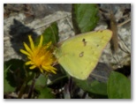 上日川峠から福ちゃん荘まで、車道と並行する山道を登ります。早くも大声で泣く小さな女の子を連れた家族が、困った顔をしていました。大きなミズナラ、カエデ、カラマツの繁る森を緩やかに登るこの道は、体をほどよく暖めてくれます。でも幼児にとっては、つまらない坂道かも知れません。私もいくつかの山で、子供にお菓子を与えながら、だましだまし登ったことを憶えています。福ちゃん荘に到着すると、山の蝶が飛んできて、背中のリュックや手に止まりました。