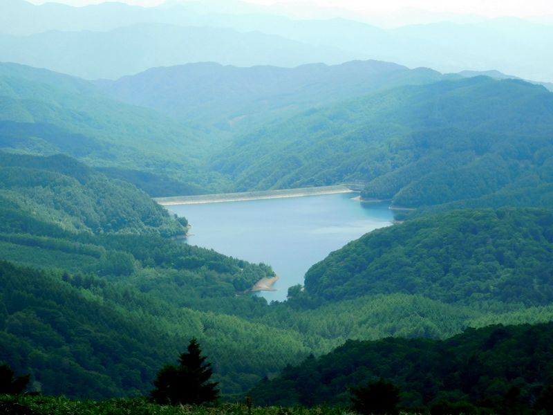 -- 午後の陽光を反射する大菩薩湖。13:45