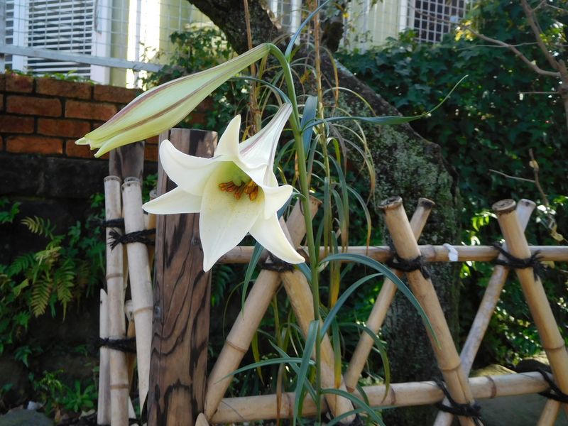 -- タカサゴユリ、荏柄天神社の参道に。12:38