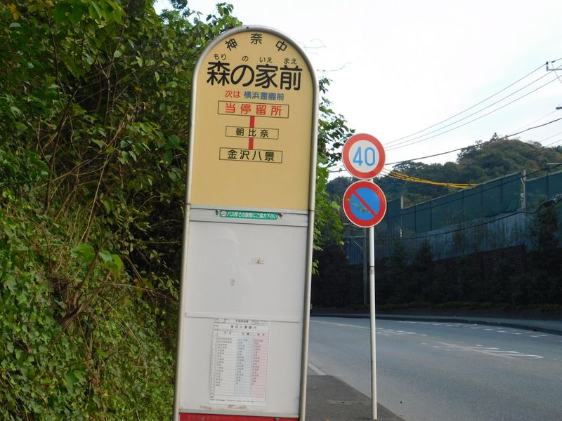 -- 森の家前バス停:金沢八景方面行き乗り場。