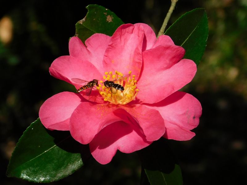 -- ホソヒラタアブ(左)とクロヒラタアブ。