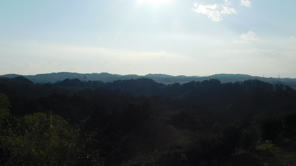 -- 先に歩いた、天園ハイキングコースの稜線(遠方)。14:37
