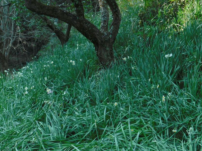 -- スイセンの群落。