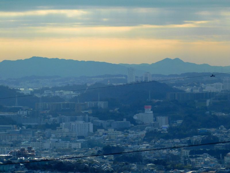 -- 鋸山(斜めのギザギザ)と富山(双耳峰)
