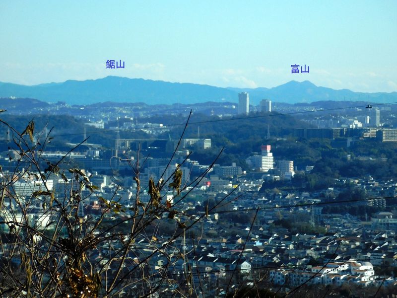 -- 鋸山(長い斜め稜線)と富山(双耳峰)