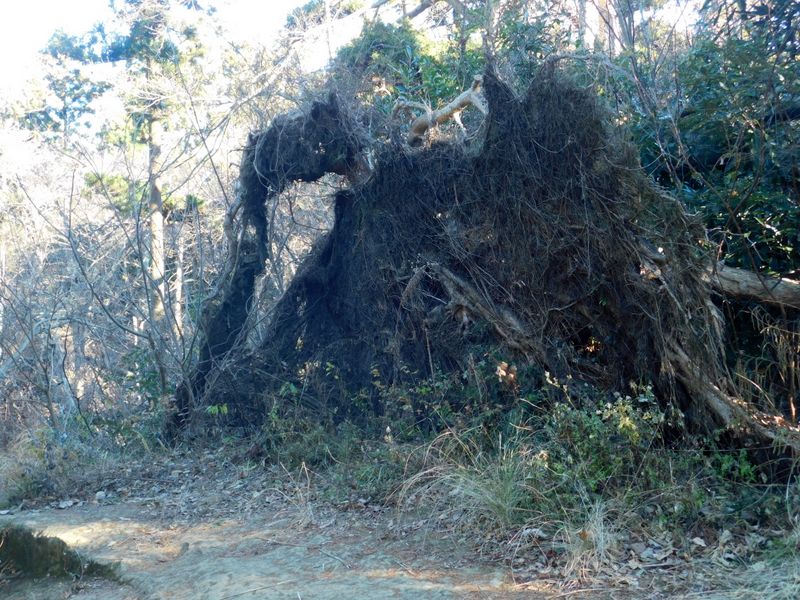 -- まだあった、岩から根がめくれて倒れた木。