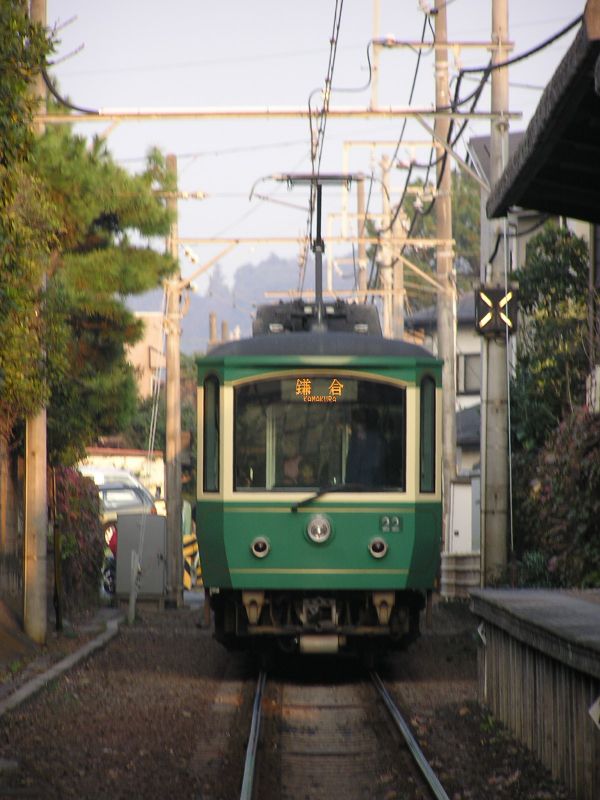 -- 由比ヶ浜駅で鎌倉行きを見送る。