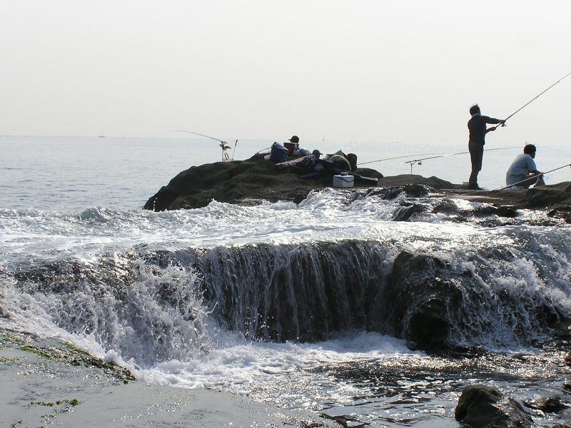 -- 波に洗われる磯の岩。