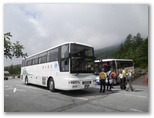 大きな高速バスが入って来ました。[須走口五合目] と書いてあります。往路の切符を運転士に渡し、座席番号1Aに着席。30人ほど乗ったでしょうか。発車すると、ゆっくりと市街地を抜け、「須走浅間神社」「宮上」「馬返し」「狩休(かりやす)」と、すべて通過して行きました。車内アナウンスも日本語、英語、中国語、韓国語と国際的。予定通り約1時間で須走口五合目に到着しました。