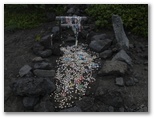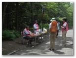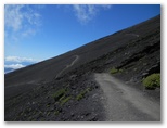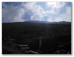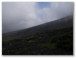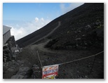 携帯電話で電界の強い場所を探すと、富士山保全協力金を受け付けている場所でアンテナがよく立ちました。八合目の下江戸屋に宿泊を予約します。実は、天候次第では、本六合目あたりまで行って帰ろうと思っていました。通話は始め先方で聞き取り難かったようでしたが、どこかに移動してくれたのでしょう。宿泊と夕食を予約し、いざ出発です。高山病の予防のため、30分か1時間ほど休憩してから登り始めようかとも思いましたが、超低速で歩けば大丈夫だろうと考えました。