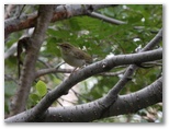 森には小鳥たちもたくさんいました。歩いていると、足下からいきなり飛び立つ鳥もいて驚かされます。可愛らしいウグイスがいたので、撮影しようとしましたが、カメラの焦点が合う前に移動してしまうのでなかなか捉えられません。通りかかった女性は、大きなカメラを構えて、そのウグイスがホバリングしているところを捉え、見せてくれました。私は山にはコンデジしか持って行きません。携行品の損害もカバーする登山保険を考える時が、そろそろ来たかなと思いました。