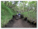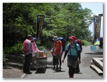 ドタン、ザザザーと落石がありました。キャーと凄まじい悲鳴。幸い人の列にぶつかる寸前に石が止まってくれました。しばらく進むと、また落石。また悲鳴。私が上を見上げると、2人くらいが金剛杖を路肩に突きながら歩いていました。これでは路肩の石を突き落としながら歩くようなものです。私は大声を出して、「ロープの外に杖を突かないでくださぁい!」と二回叫びました。そして「落石が起きまぁす!」と一回。幸いその2人は日本語が分かる人だったようで、一発で改めてくれました。
