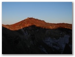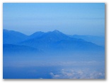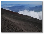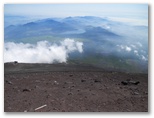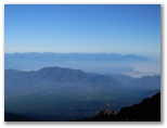 お鉢を一巡りし、東の縁に戻って来ました。絵のように美しい丹沢山塊を再び目にします。富士山は360度、どこから見ても美しいと言われますが、富士山からの眺望も360度美しいものでした。午前7時半、太陽はまだ優しい光を地上に投げかけています。40数年前の山頂では、月光下に怒涛の雲海を見ました。今回は素晴しい山河、満天の星、影富士、ご来光。これで富士山の魅力は全部味わい尽くしたでしょうか? いいえ。次は宝永火口を横断し、大砂走りも走りたい。そして茜色の雲海も、まだ見たことのない幾つもの花も。