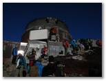 山小屋の外で新鮮な空気を吸い込みながら準備運動をしました。午前2時ちょうどに2日目の行動を開始。いきなり急登が始まりますが、羽がついたように体が軽くなっていました。高地にはすっかり慣れたようです。慎重にペースを抑え、15分かけて本八合目に到着。標高3,400m。ここで吉田ルートの登山道と合流します。いきなり夥しい登山者の列に加わることになりました。