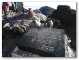 その先は、お鉢の北縁を巡るなだらかな道が続きます。右に火口と万年雪、数々の観測装置(地震センサー?)、金明水など。左は雷岩、釈迦の割石、白山岳。これを過ぎると、お馴染みの奥秩父、大菩薩連嶺、御坂山地などの大パノラマが展開しました。南アルプスに引けを取りません。ここで目の前の久須志岳に登ると、立体的な方位盤があり、山座同定ができました。火口に向き合えば、真正面に虎岩。威厳を持って、今にも崩れそうな斜面に踏ん張っています。
