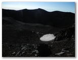 ふと目を覚まし、ヘッデンの暖色ランプを点けて腕時計を見ると、午前2時半でした。「あっ、もうこんな時間か、でもちょうど良かったな。」静かに起き上がって寝室を出て広間に行くと、午前1時半でした。「あちゃぁ、間違えた!」出発するには早すぎるので、午前2時まで山小屋の従業員たちを見ながら、広間で過ごすことにしました。山小屋は24時間営業で、深夜の休憩(3時間ごとに3,000円)の人や、未明に熱いカップめんを求めて立ち寄る人などにも対応しています。