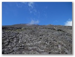 さらに登って行くと、植生はオンタデばかりになりました。オンタデの「オン」は木曽の御嶽山に由来する名だそうです。五年前の9月下旬に登った浅間山では、紅葉したオンタデが黒い火山礫の山肌に美しい彩を与えていました。富士山では本八合目より上になると、オンタデも見られなくなり、肉眼には岩と砂礫だけの世界になっていきます。