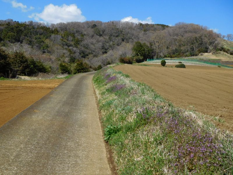 -- 正面の高尾山へとコンクリート道が続く。12:41