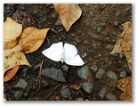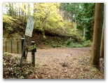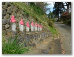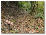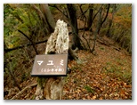伏馬田の集落に入ると、再び東海自然歩道の道標があり、坂道を2回鋭く折れて、コンクリート道を登ります。きょうは、最初から最後まで東海自然歩道の道標に案内されるので、道を間違える心配はまずありません。この道に、ギフチョウの採集が禁じられていることを告げる注意書きが立っていました。今はギフチョウが飛ぶ季節ではありませんが、卵、幼虫、蛹も含めての規制なので、一年を通して意味のある看板です。その先しばらく、石畳の道が続いていました。