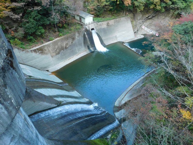 -- 道志ダム:すだれのような放水がされていた。14:52