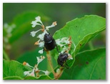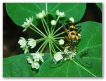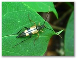 今回、私は見つけたい花と虫のリストを作ってきました。ところが、苔類は豊富なのに、花はほとんど見られません。10年前(2015年)の同月同日に須走ルートを歩いたときは、たくさんの花を見ました。ここは地質や環境が異なるのでしょうか? キョロキョロ探しながら歩いていくと、イケマの花を発見! 花にカメラを近づけると、そこに3種のハナカミキリがいました。道はU字溝、V字谷のようになっているところが多く、雨の日は道が川になりそうです。