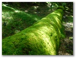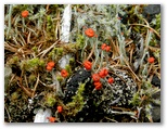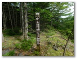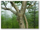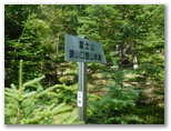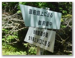 「一合五勺」と「二合」を通過し、「御殿庭下」(二合五勺)に到着。出発してから正味100分でした。この地点は帰りにも通ります。ここで小休止。日差しを受けるようになって、暑くなりました。携行飲料は、緑茶600ml、スポーツドリンク600ml、水道水300ml。いずれも冷凍してあり、解けた分を少しずつ飲んでいきます。この辺りから地表にはハナゴケ、樹上にはサルオガセが見られるようになりました。明るく開けた場所では、ヒョウモン類(蝶)も飛んでいました。