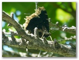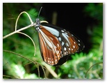森林限界まで下ると、「御殿庭上」です。ここで、歩行モードを「花・虫探索モード」に切り替えました。「御殿庭」と言うのですから、その庭にどんな花が咲き、虫が生きているのか、楽しみです。分岐点の道標を見て、「水ヶ塚・御殿庭」方面に進みました。メルヘンチックな宝永第三火口のすり鉢をもう一度眺め、再び森林に入ります。すると、さっそくアサギマダラがふうわり、ふうわり、と飛んで来ました。長駆省エネ飛行の達人、ロマンをかき立てる蝶です。