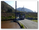 バスは吉久保入口から狭い道に入ったところで停車してくれました。降りる私に「気を付けて」と、運転士さんの一言が与える、根拠不明の安心感。いいですね。JR中央本線の下をくぐって行くバスを見送り、私も後に続きます。チューリップが数十本、気儘な間隔で咲いている角地がありました。家の前に立っていたおばあさんに「お早うございます」とあいさつしたら、「チューリップがきれいでしょう!」と言われました。