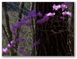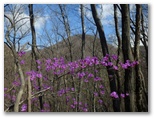 ミツバツツジが咲いていました。寒風の吹きすさぶ尾根でしたが、透明感のある赤紫色の花は、元気をくれる色彩です。この花がずっと続いてくれるといいのですが、そこからわずか5分ほど登ると、花は見られなくなりました。ツツジの木はその先にもたくさんあったので、これから上へ、上へと咲き上がって行くのでしょう。もしかしたら、隠れた花の名所なのかも。浜立山は、白縫姫のための花立山、だったりして。急登の喘ぎを紛らわすための勝手な空想ですが。