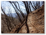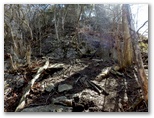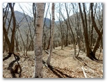 ふと振り返ると、もの凄い急斜面に見えました。下りではスリップや転倒に注意しないと、ずっと下まで転げ落ちかねません。すみ沢沿いの登山道を女坂とすると、浜立尾根は男坂。決して時間の短縮にはならないこの尾根を登る理由は何でしょうか? 言うまでもなく「そこに尾根があるから」なのですが、冬枯れの今は、見晴らしと日当たりが好いのは確かです。新緑や紅葉の美しさも、その季節ごとに登ると分かるのでしょう。山の魅力を簡単に知り尽くすことはできません。