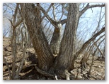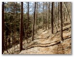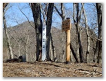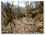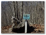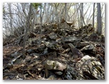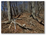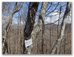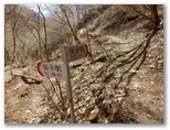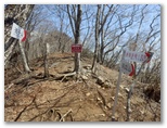 大鹿山頂にも、オッ立と同様、二つの山頂標が立っていました。加えて私製の小さな山名標もあります。特にこれという感慨もない峰ですが、せっかく来たので山頂標に記念のタッチをしました。ところが下る道も分かりません。またまた適当に、西の尾根を下って行きましたが、左から巻き道が接近してきた地点で、巻き道に飛び降りました。どうもオッ立と大鹿山とは、巻き道を歩く人の方が多いようです。私自身も、一度踏んでおけば十分だと思いました。
